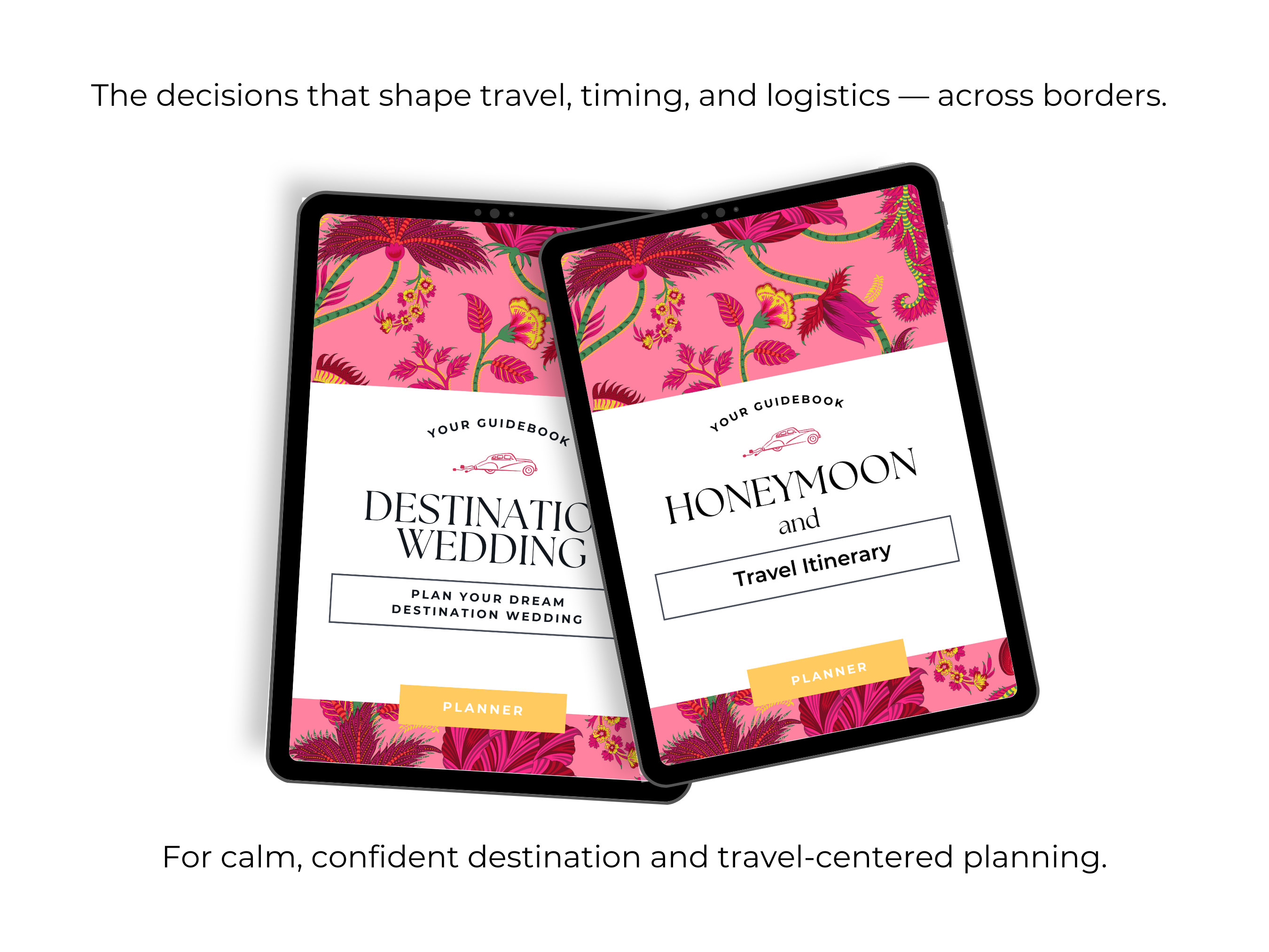 The composed framework that aligns travel, timing, and place with the heart of your wedding.
